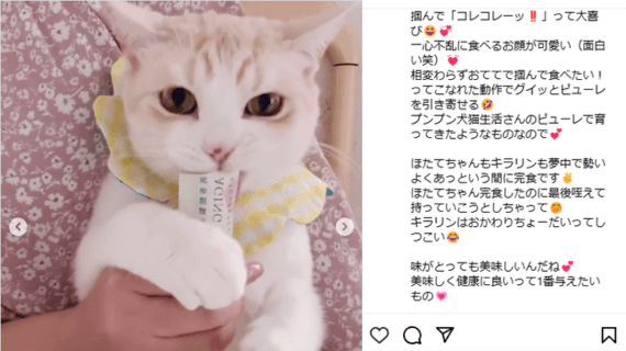 ピューレを見せると嬉しそうに寄ってきて甘えてくれます。食べっぷりもよかったけど、食事をしっかり摂ってくれるようになりました!