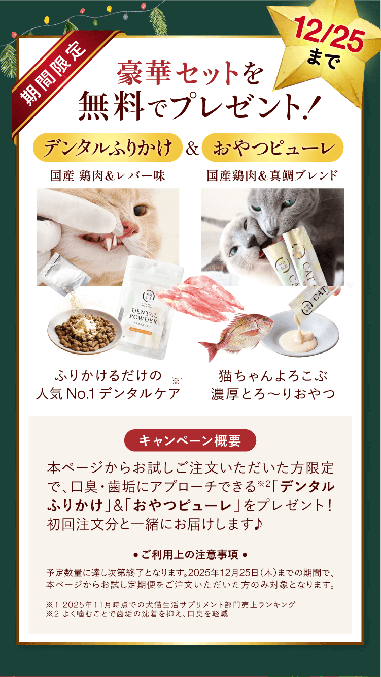 *※2025年5月31日までの犬猫生活ブランド累計販売食数(ドッグフードは1食45g換算、キャットフードは1食36g換算、手作りごはんは1食188g換算、サプリメントは1食1袋換算)