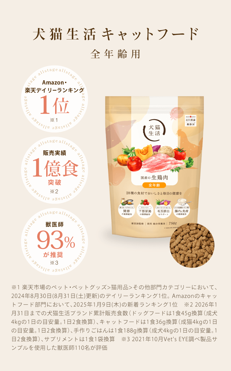 犬猫生活キャットフードに切り替えて、「健康的なうんちが出るようになった!」そんな声も多いんです!